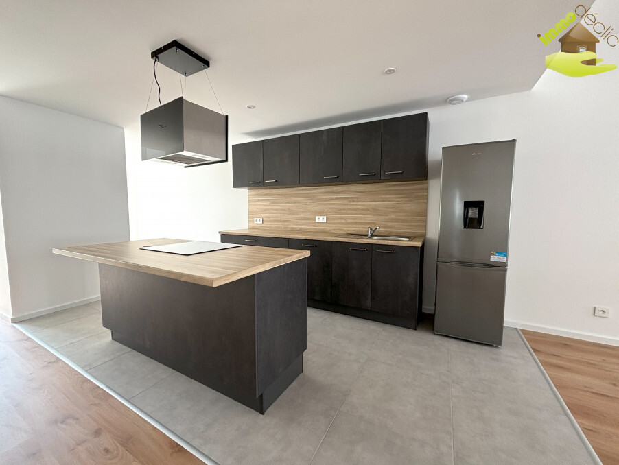 Il comprend : Une cuisine entièrement équipée (four, plaque, hotte, lave-vaisselle, frigo) ouverte sur spacieux séjour, deux spacieuses chambres de 12,43 et 19,76 m², une salle d'eau, un WC séparé, un débarras ainsi qu'une terrasse de 41,27 m².