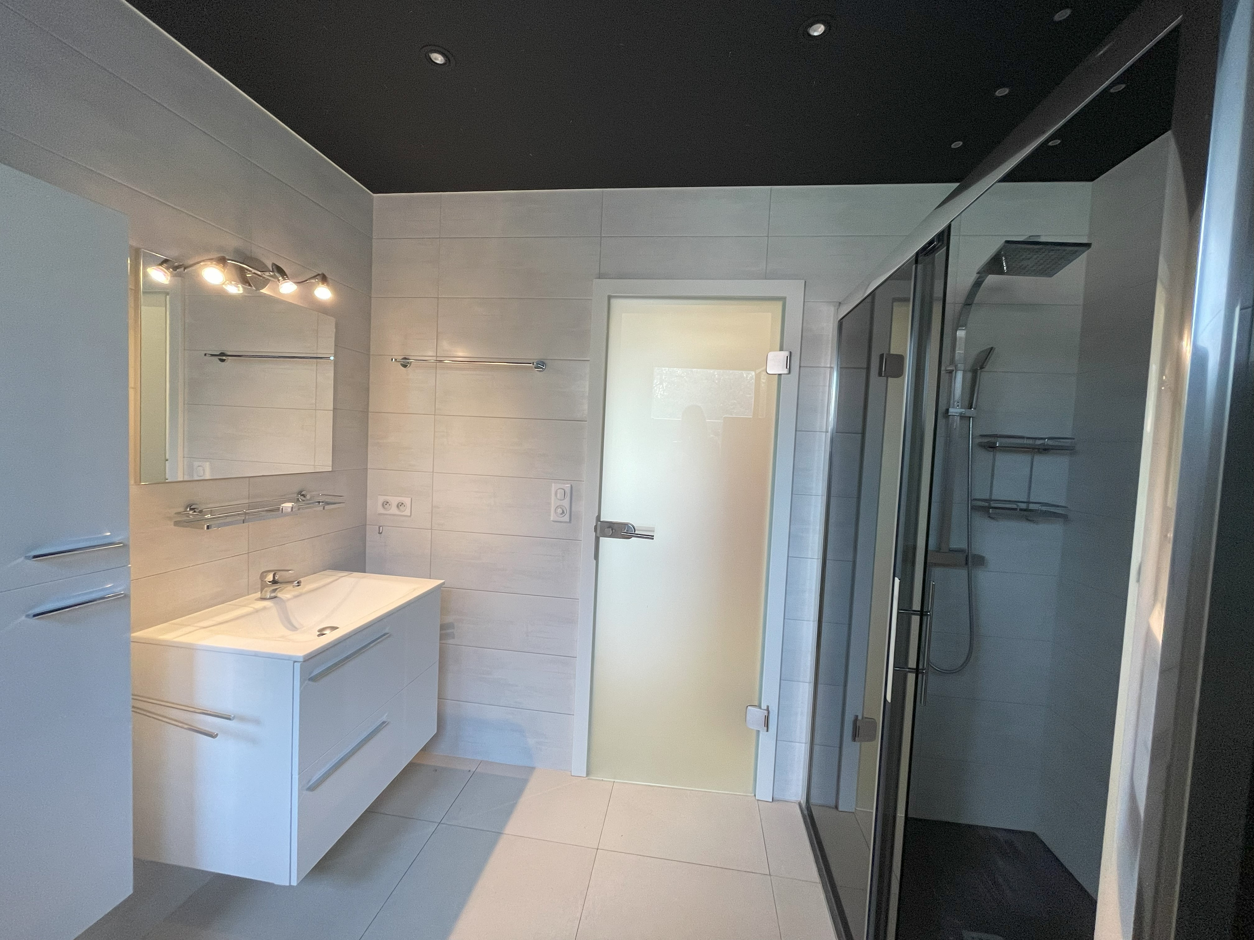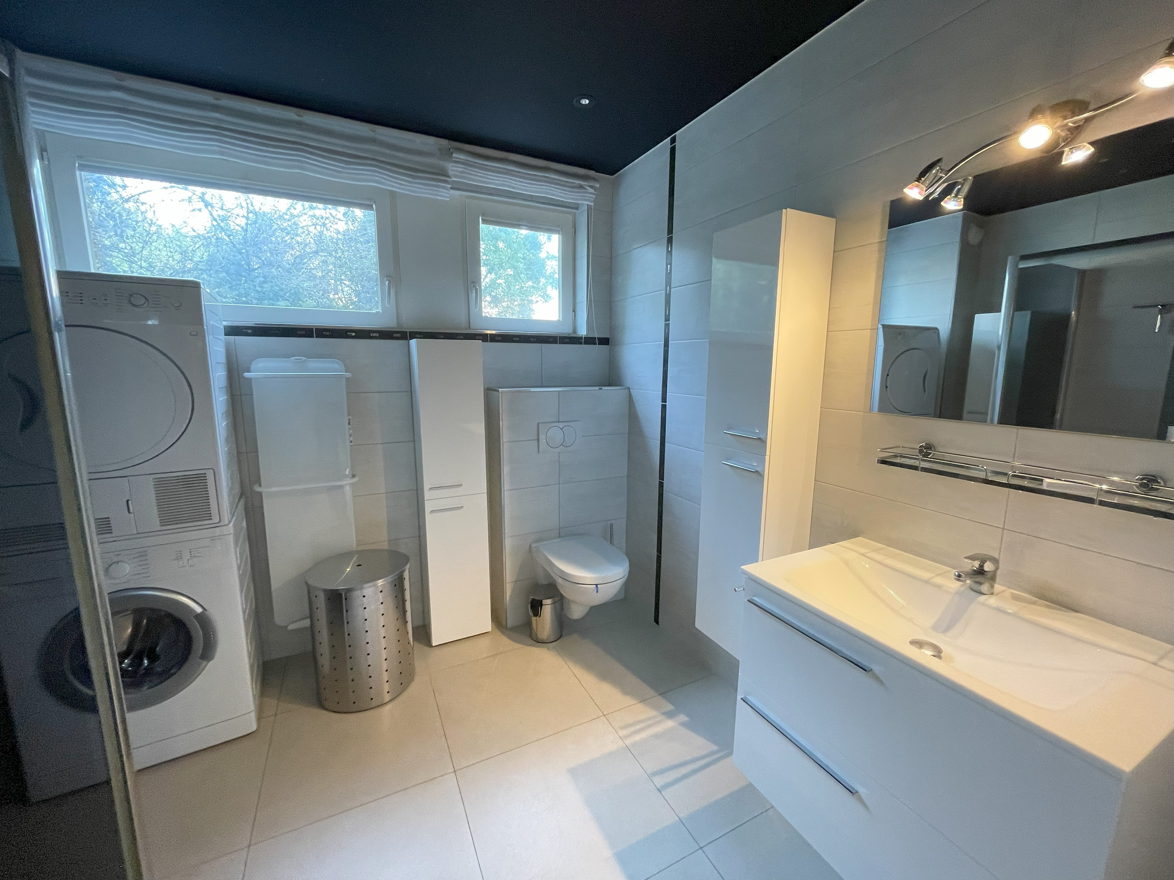 Sa salle d'eau est de belles surfaces : douche italienne, WC, et coin buanderie