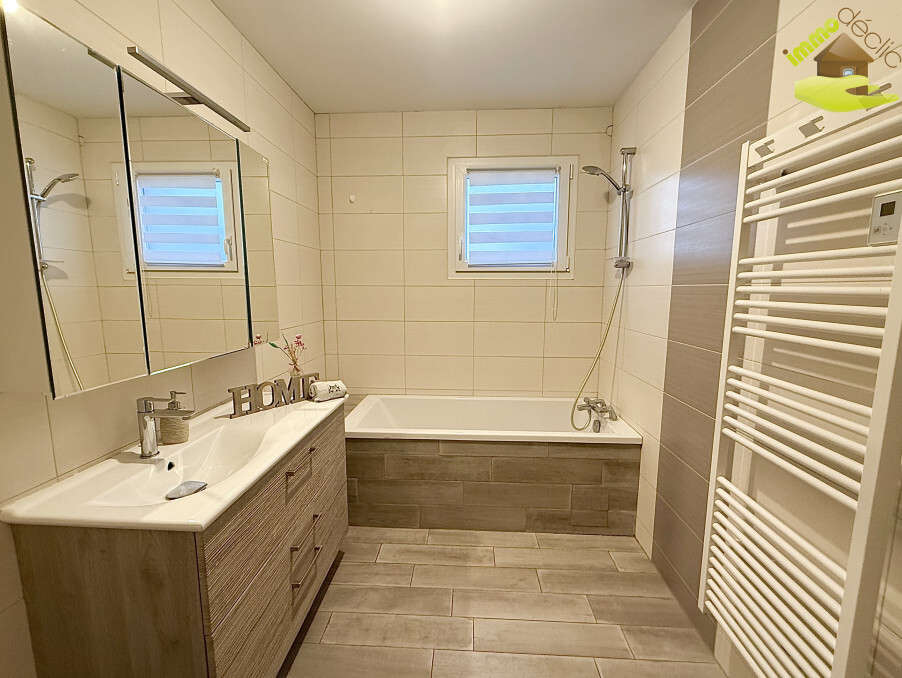 Le côté jour vous propose une entrée, un cellier, une cuisine entièrement équipée/aménagée ouverte sur le séjour, la terrasse de 14m² et un grand jardin de 2.37 ares.