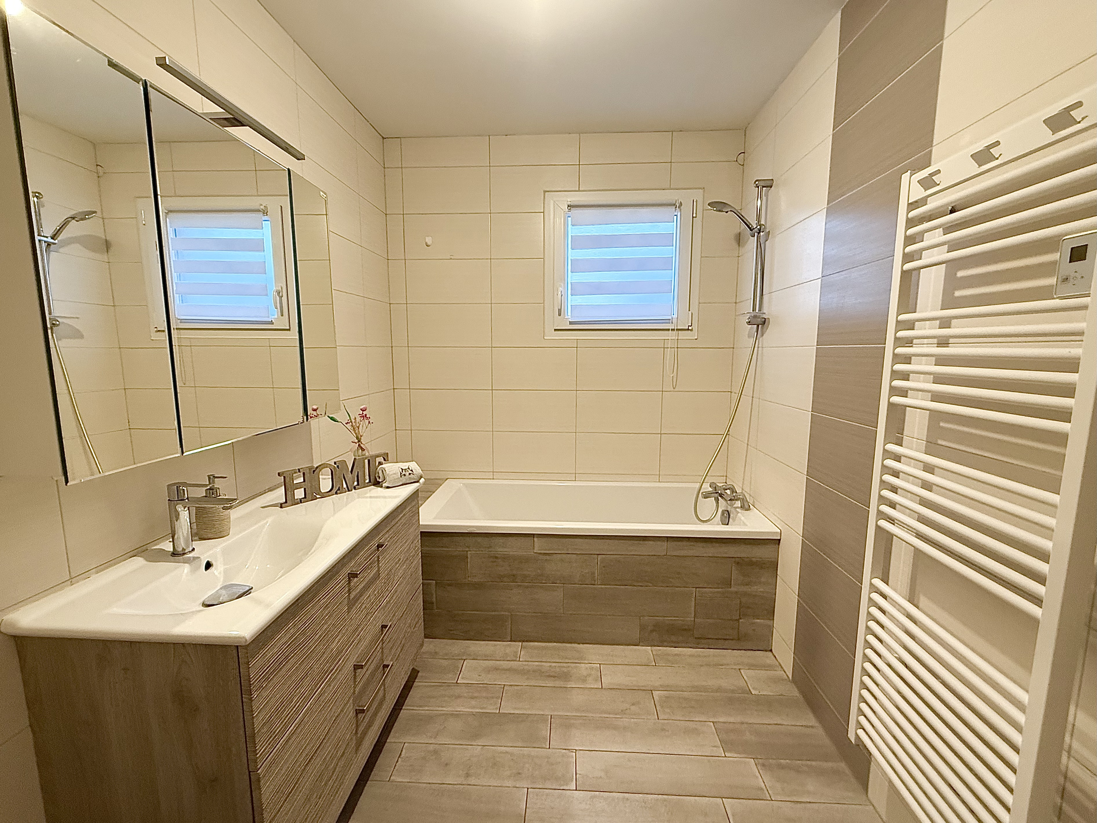 Son côté nuit vous offre une salle de bains, un WC séparé avec lave-main et deux chambres