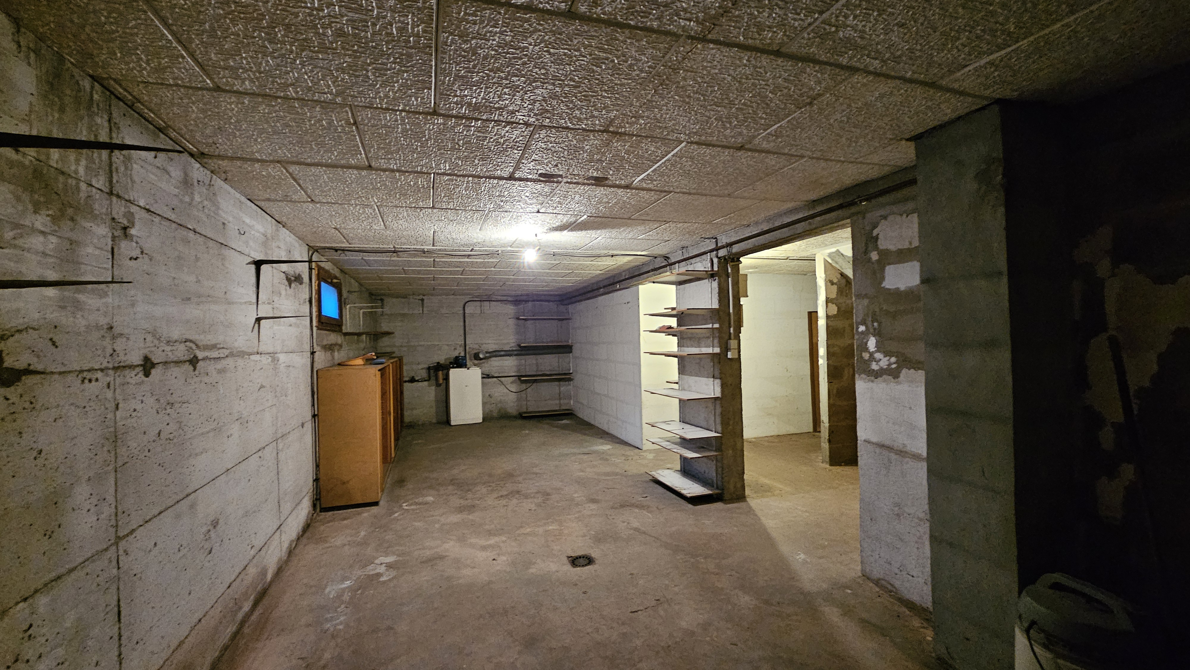 Le sous-sol complet offre un garage, une buanderie, une pièce technique et une cave à vin.