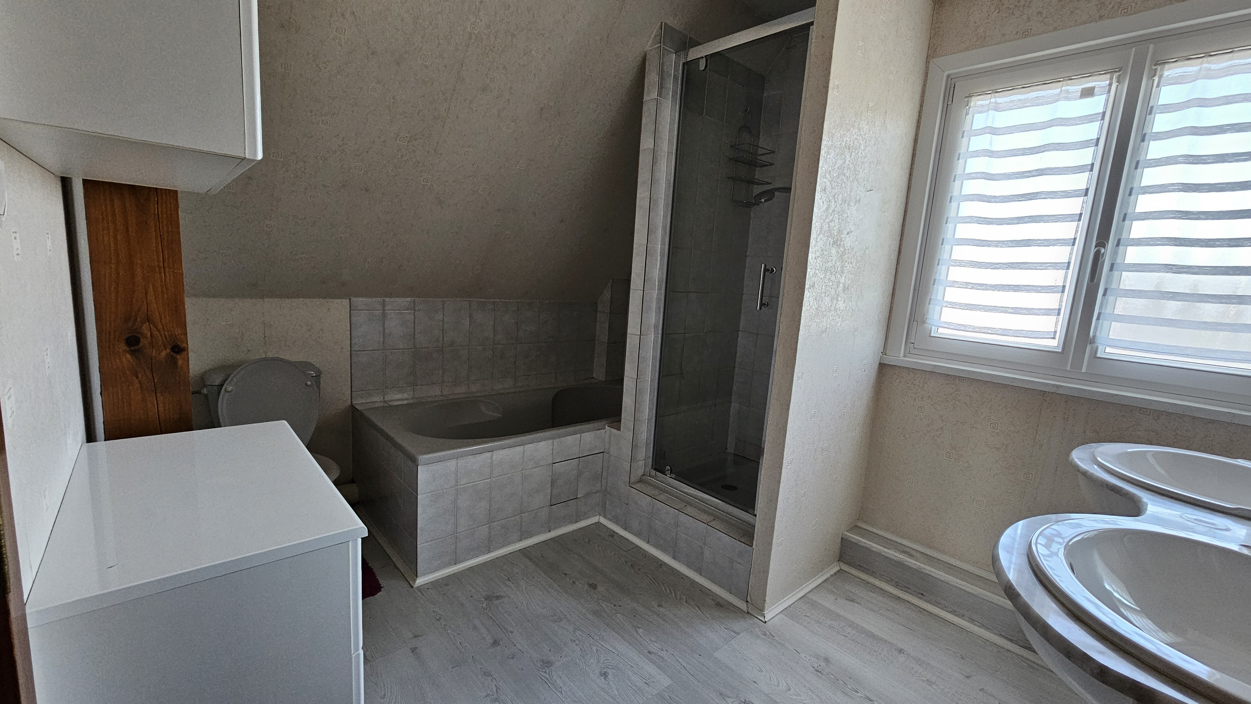 L’étage se compose de trois chambres confortables ainsi qu’une salle de bain équipée d’une baignoire, d’une douche et d’un WC.