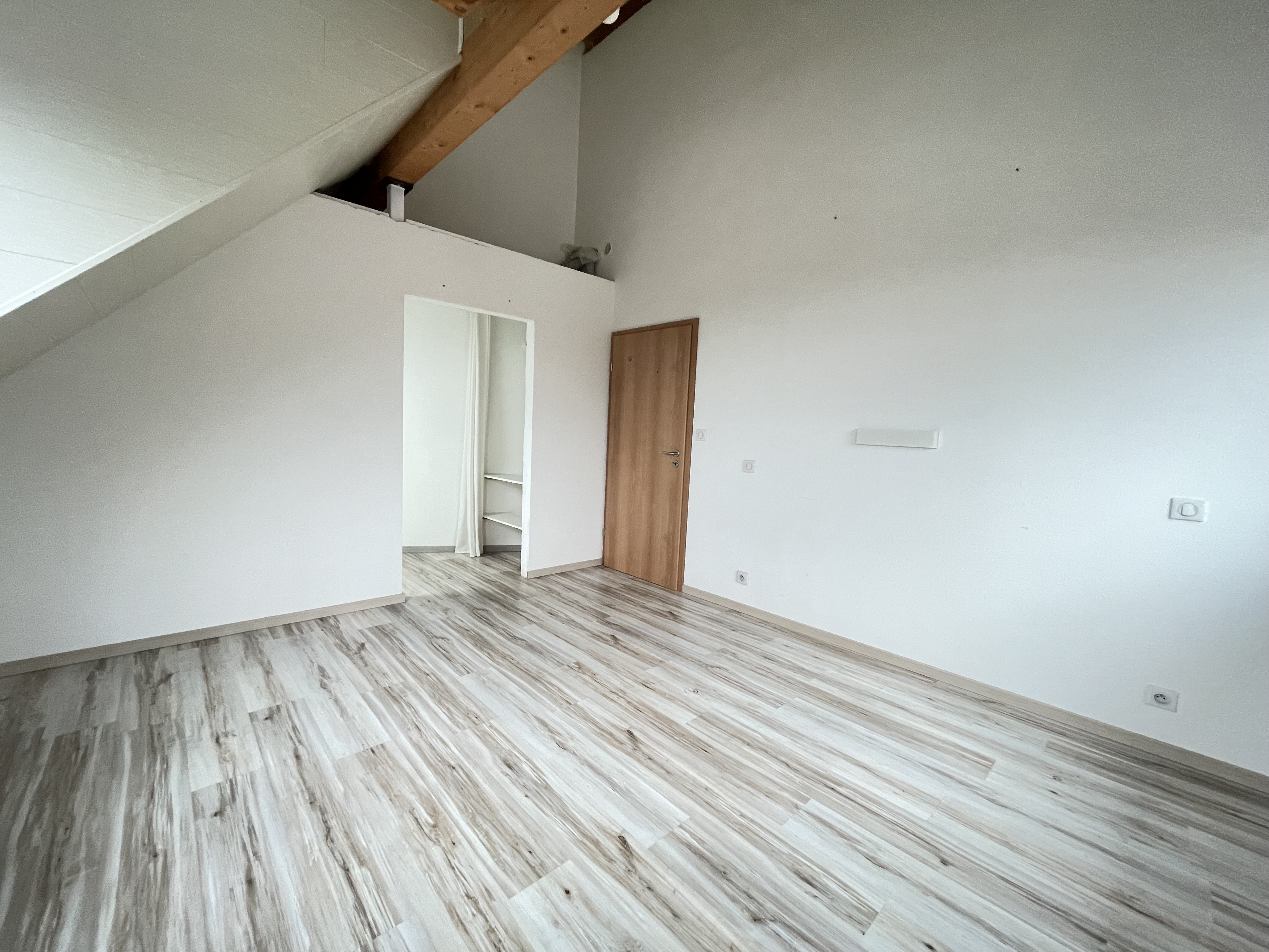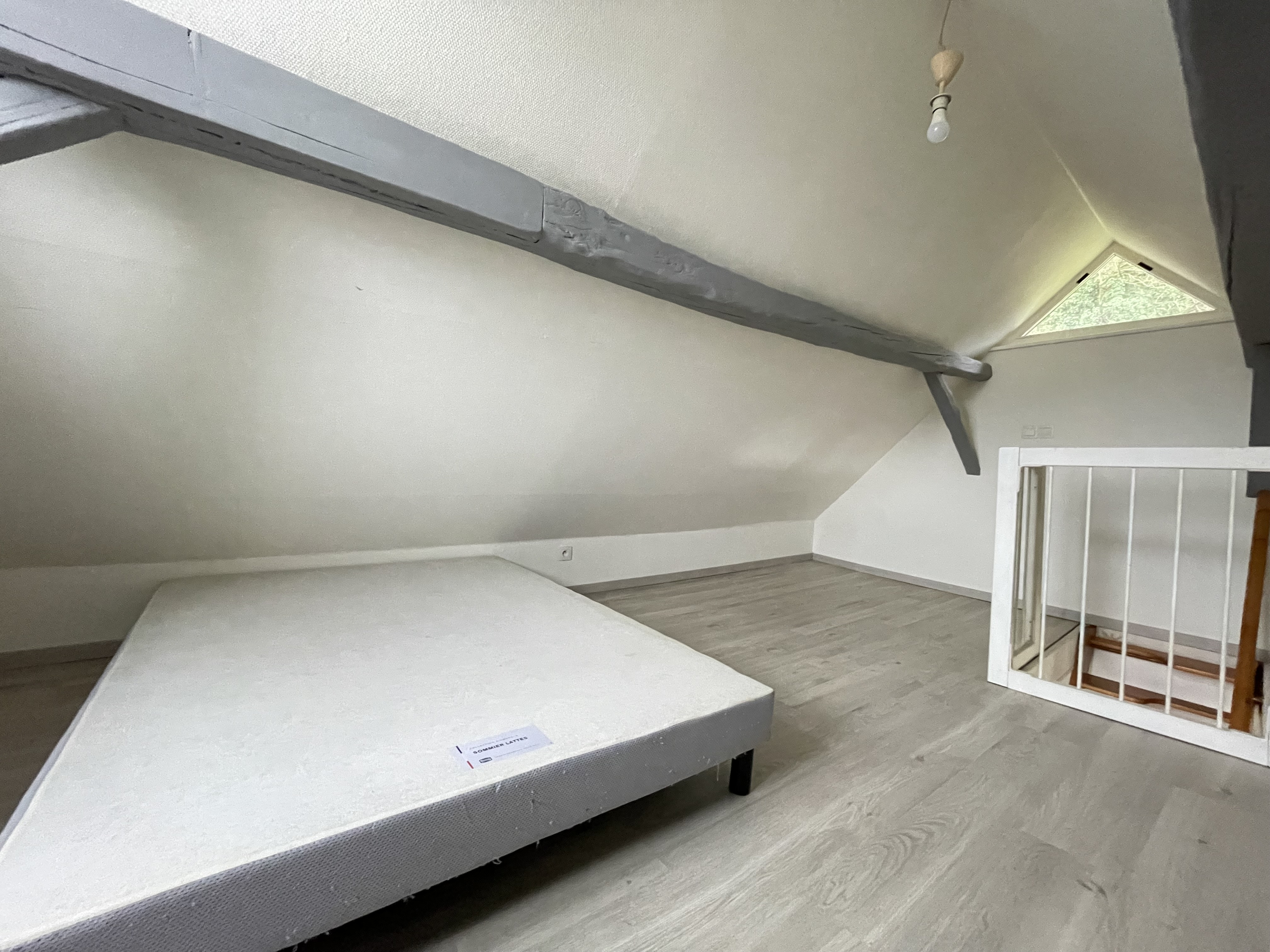 A l'étage : un salon chaleureux et une chambre