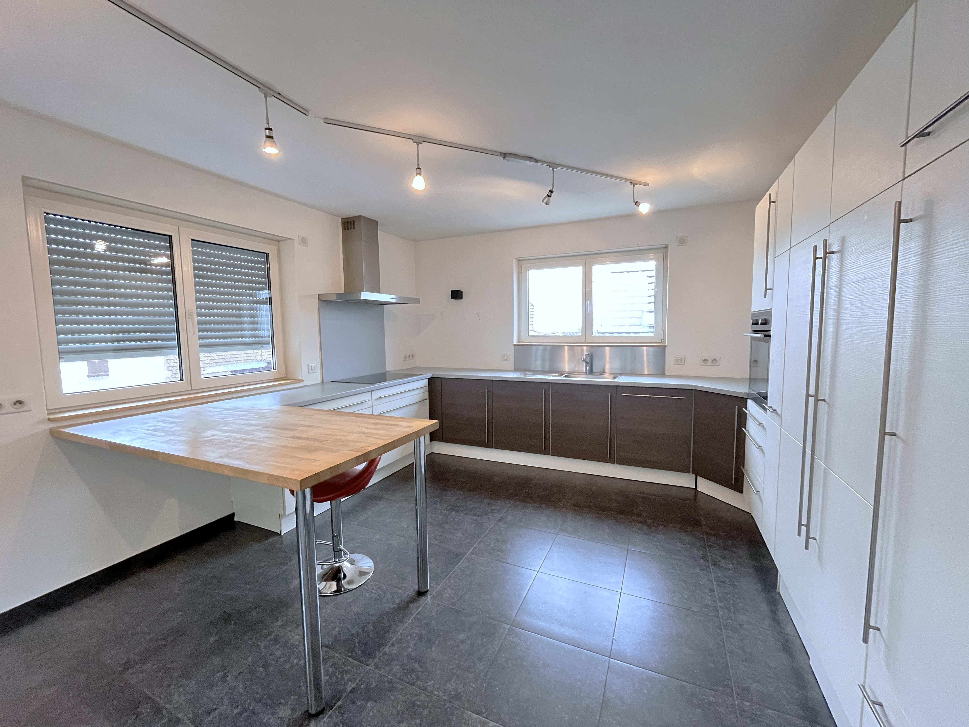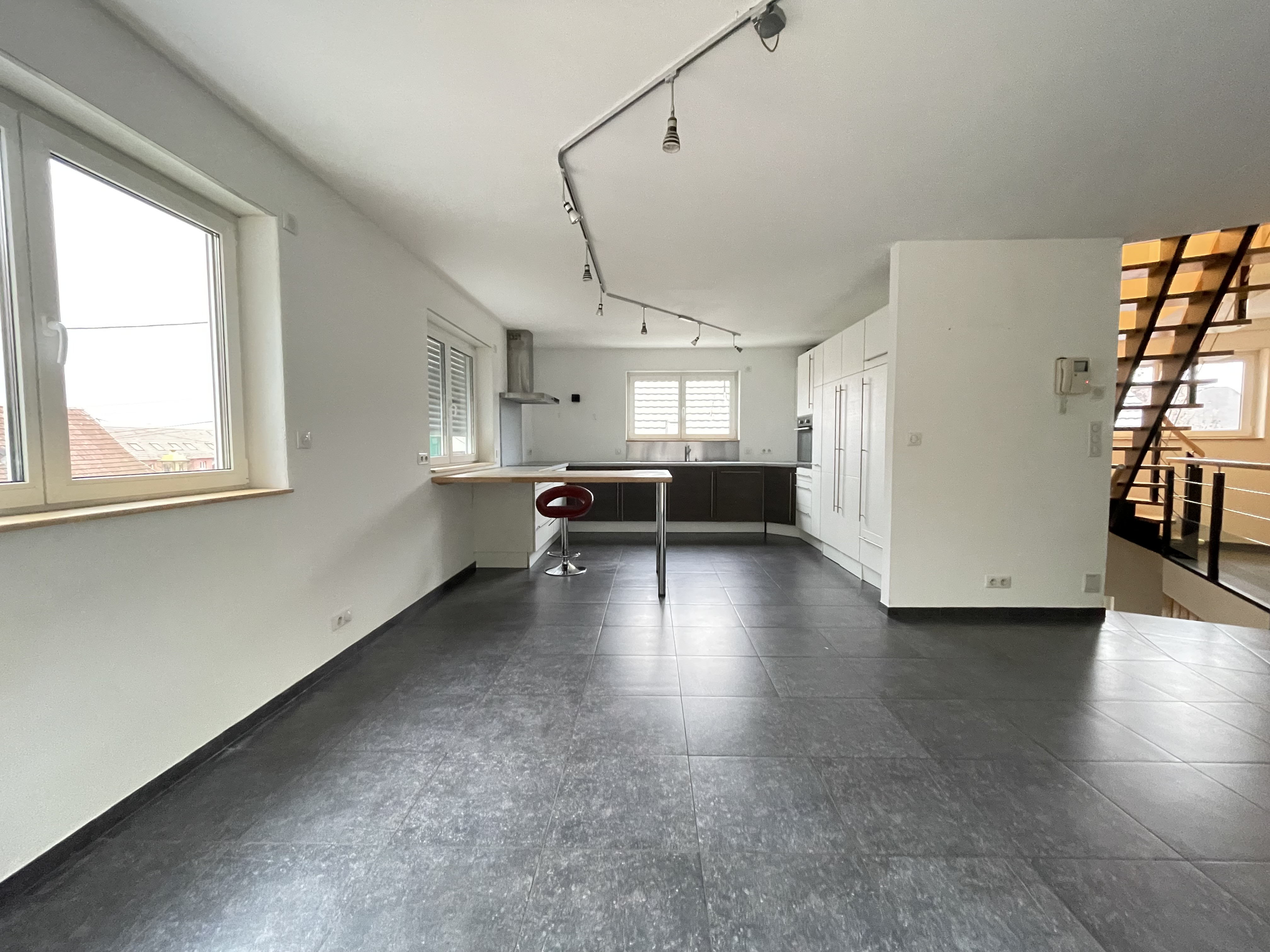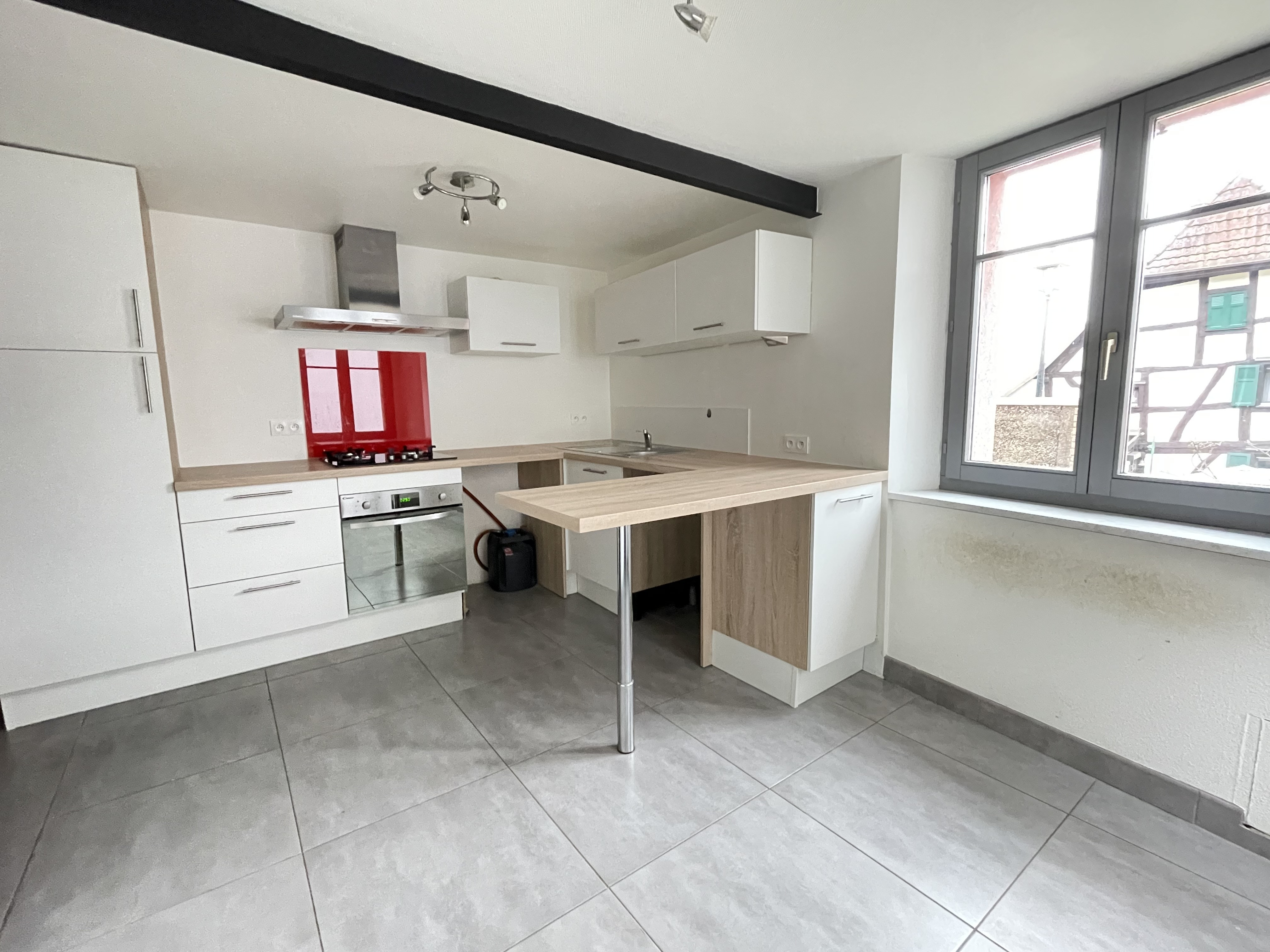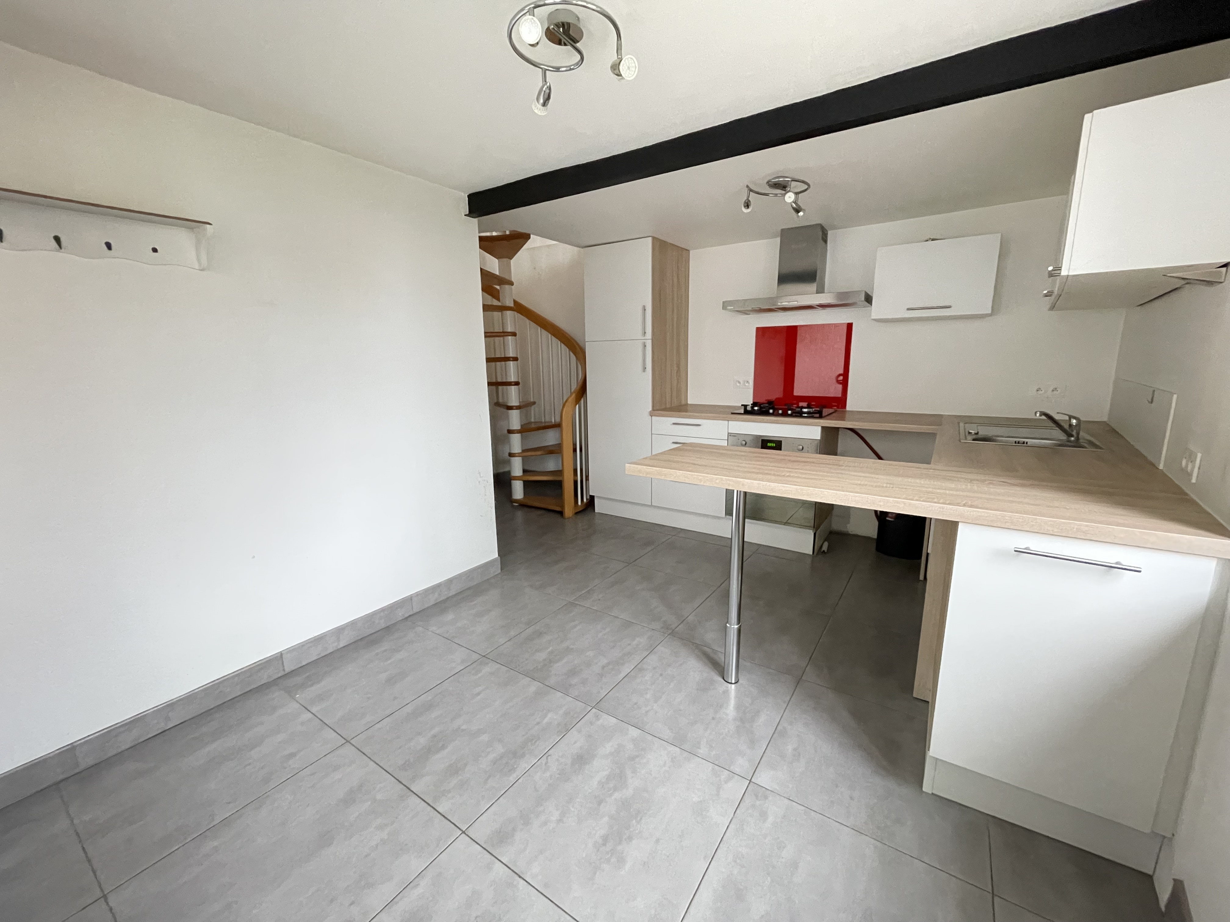 Au rez-de-chaussée : une cuisine et une salle d'eau