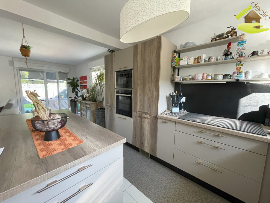Cette belle cuisine avec coin repas, vous mène au séjour, à la véranda, au jardin, au garage et enfin à une remise avec espace buanderie.