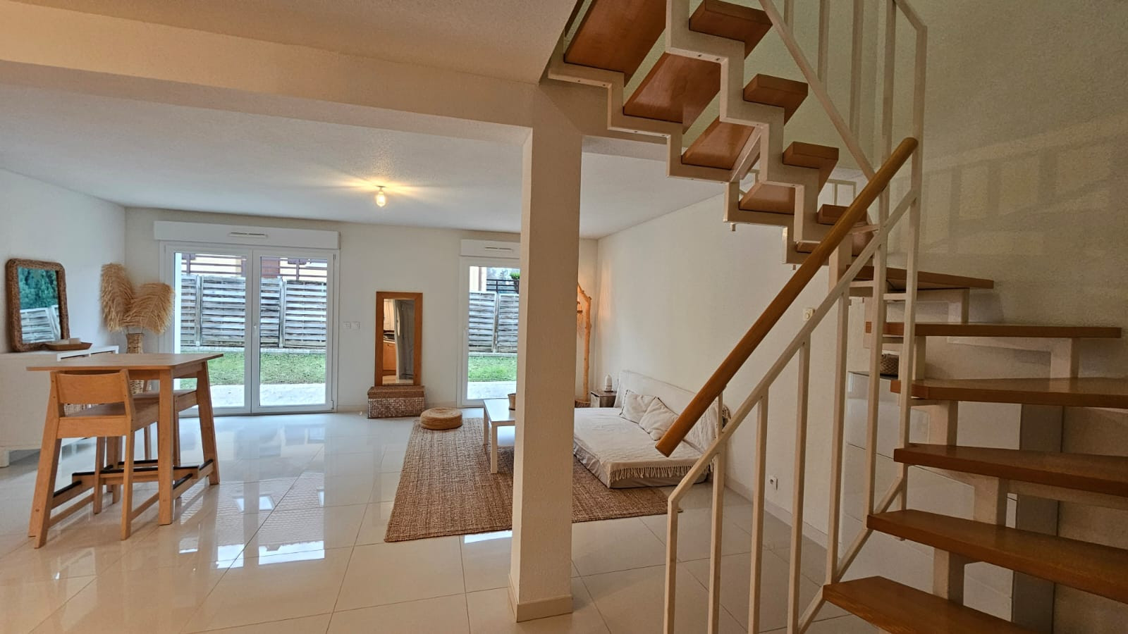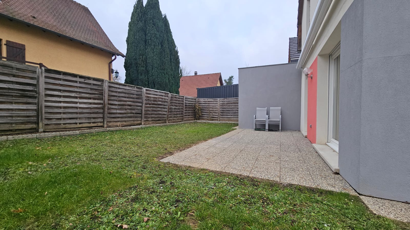 Son extérieur est plaisant : une terrasse, un bel espace vert entièrement clôturé et 2 places de parking privatives.