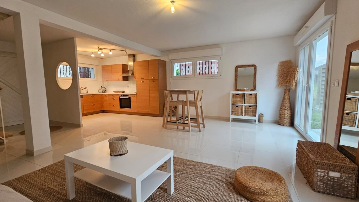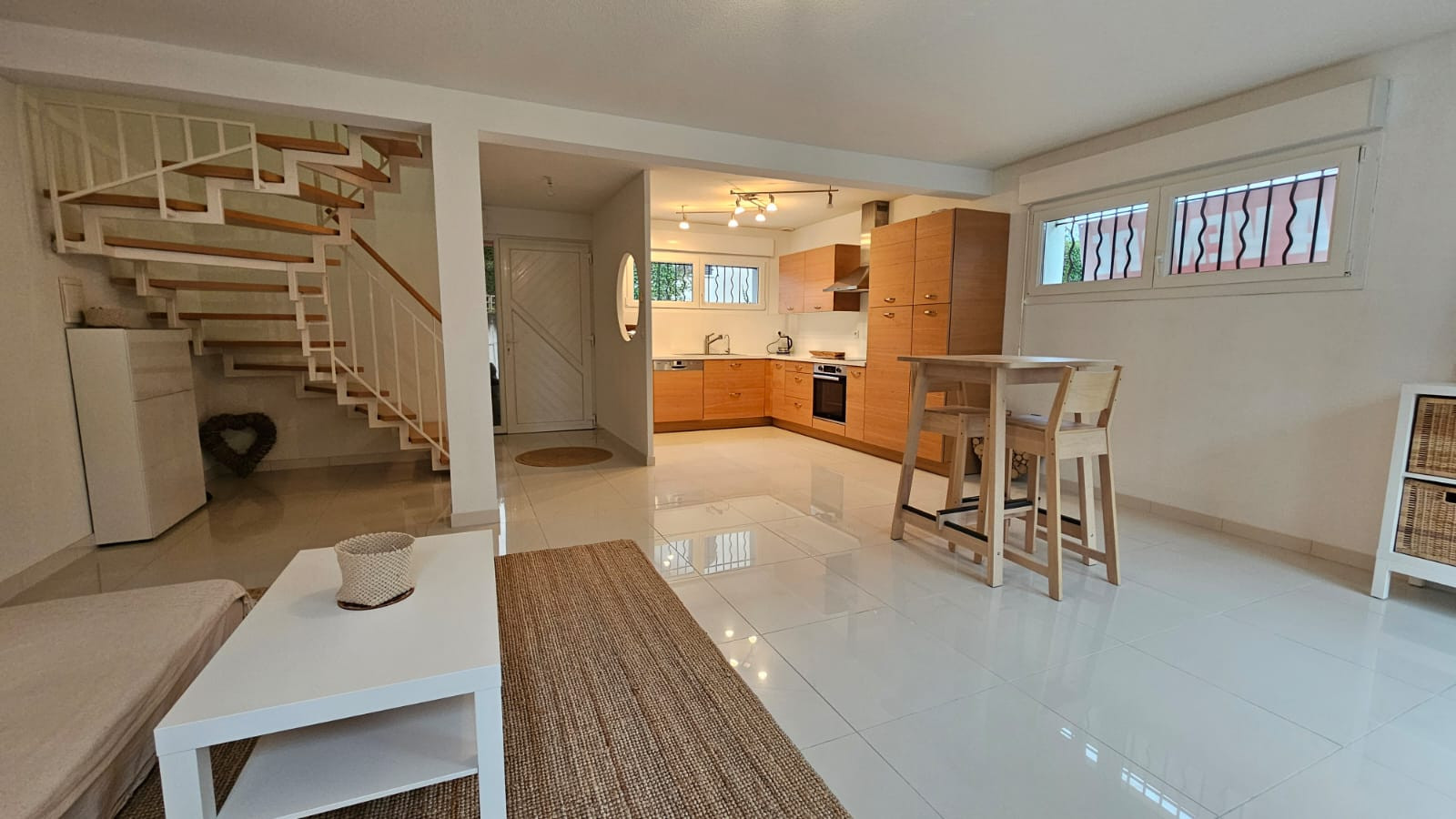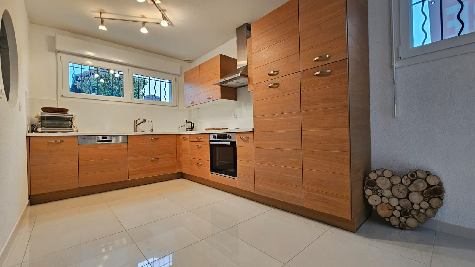 Cette maison est de tout confort : Fibre, beaux matériaux, porte garage motorisée, portes fenêtres et fenêtres doubles vitrages en PVC, store