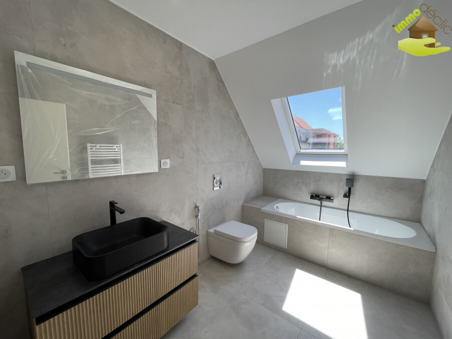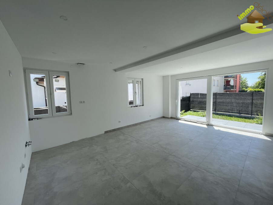 Au rez-de-chaussée, une entrée, une salle d'eau + WC, un grand séjour spacieux, lumineux avec accès terrasse et un balcon