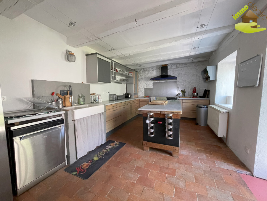 Une cuisine entièrement équipée/aménagée s'ouvre sur une belle terrasse et jardin.