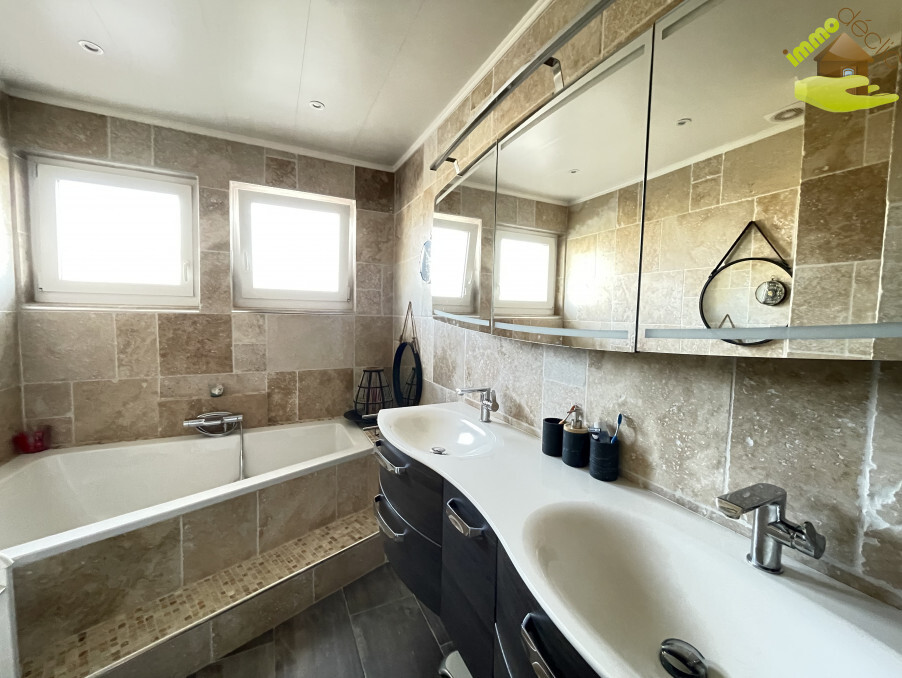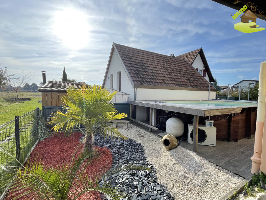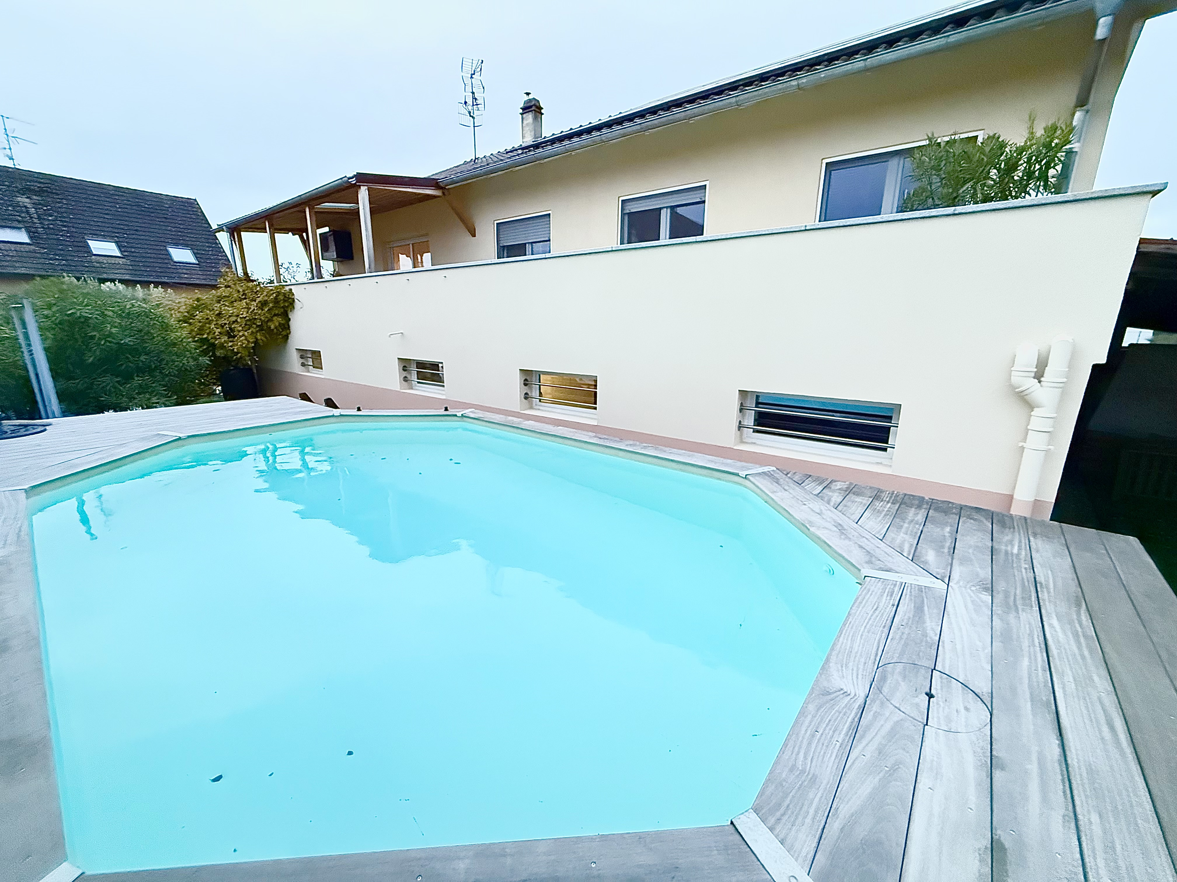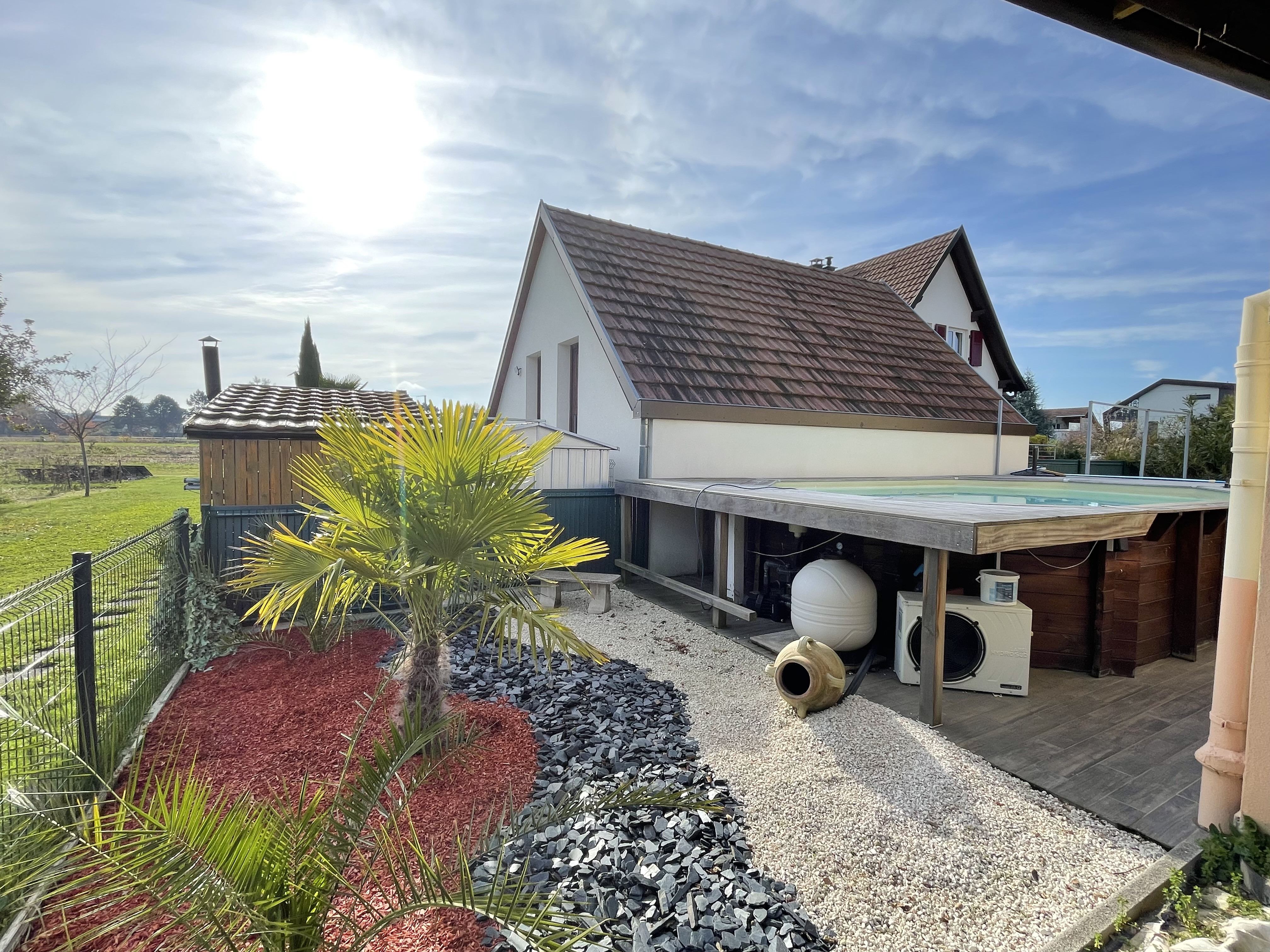 A vendre à Village-Neuf : spacieuse maison de plain-pied, rénovée il y a une dizaine d'années et idéalement située sur un terrain clos et arboré de 6,80 ares.