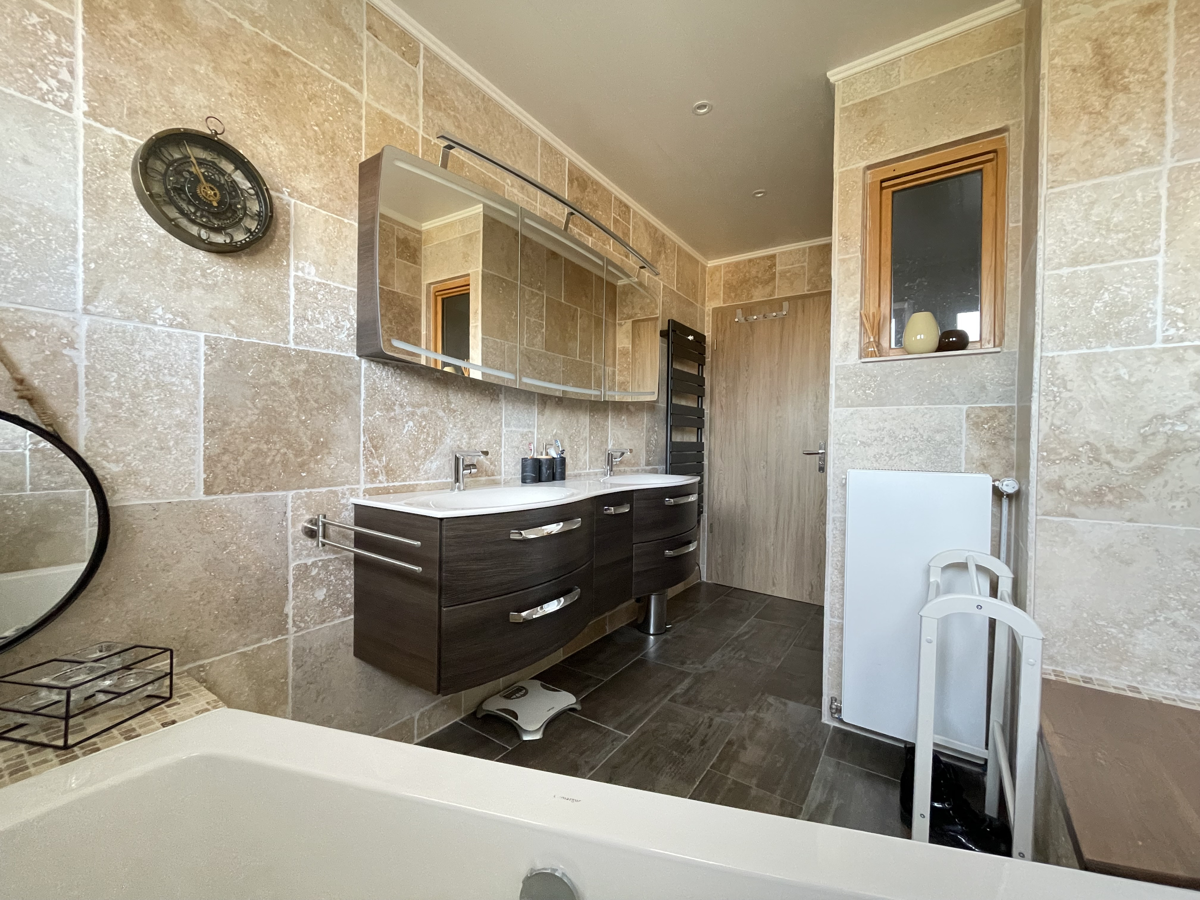 Cette maison allie confort et fonctionnalité : pompe à chaleur, panneaux solaires, climatisation réversible, poêle à pellets, adoucisseur d'eau.